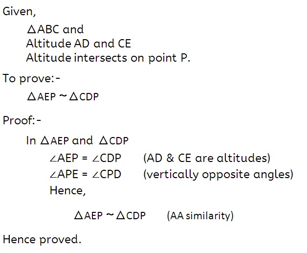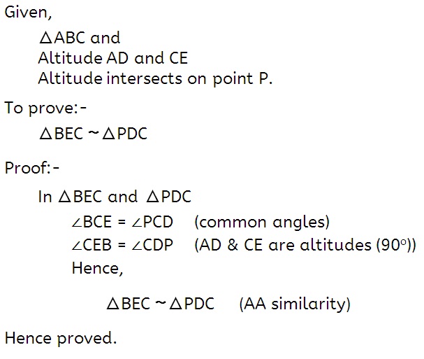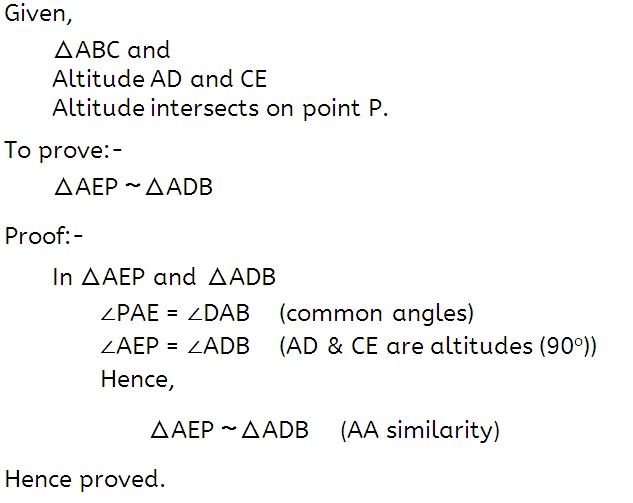 Q.7) In Fig. 6.38, altitudes AD and CE of D ABC intersect each other at the point P. Show that: